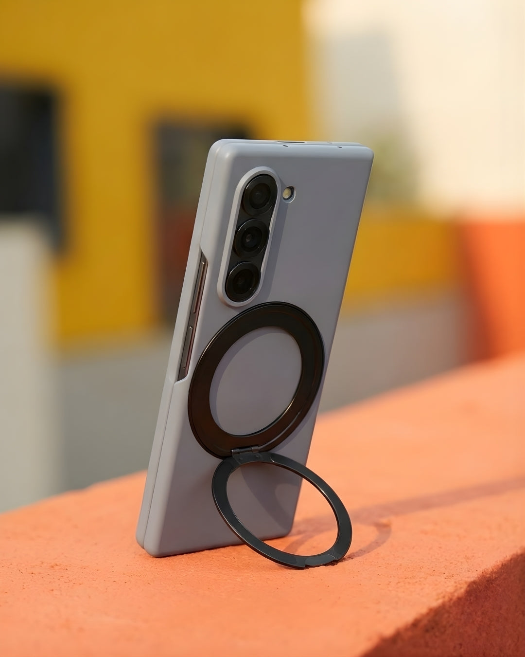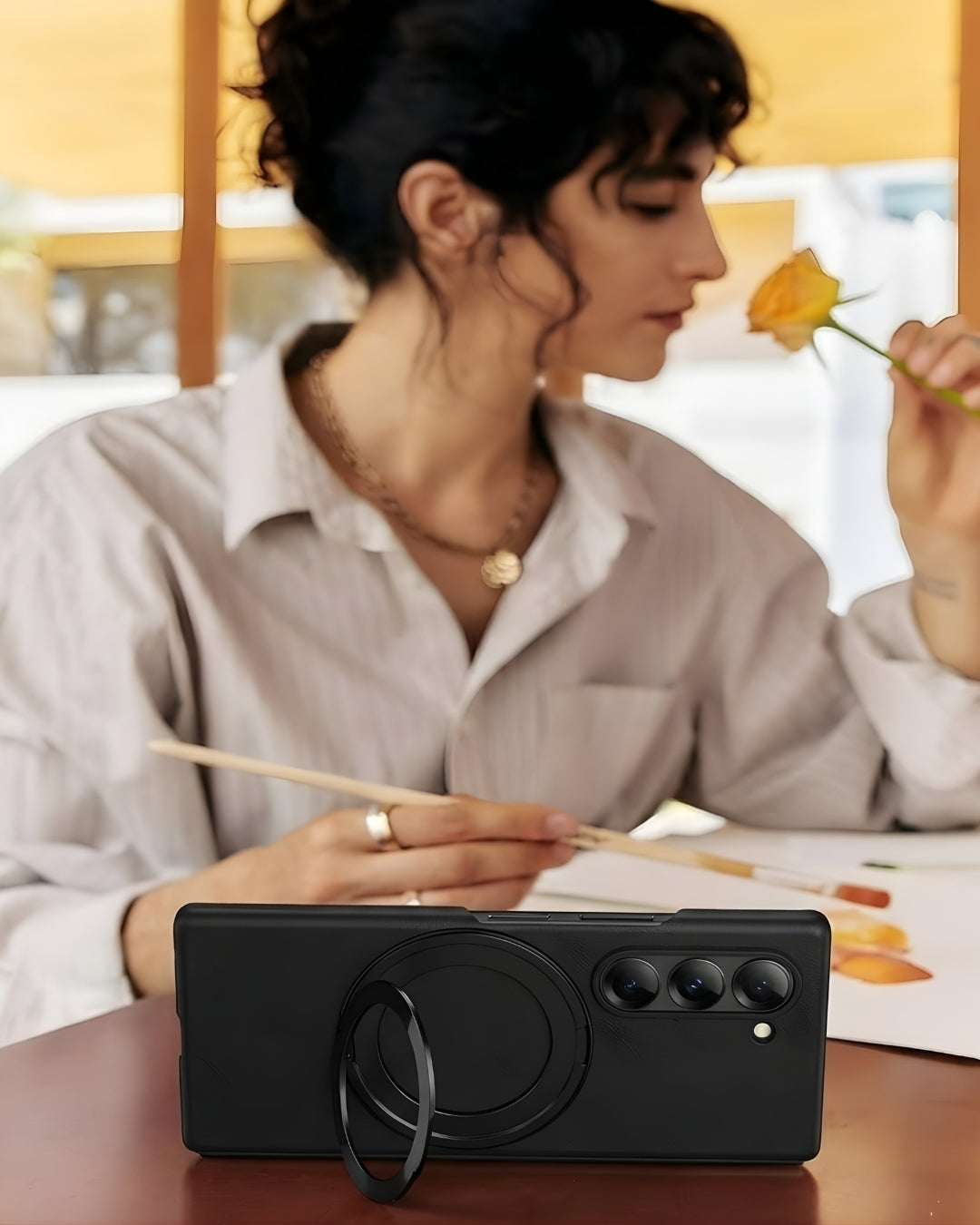 Experience ultimate stability and MagSafe convenience with this rugged, skin-friendly case for your Samsung Galaxy Z Fold. The integrated metal bracket provides a secure, adjustable stand, while powerful magnets ensure seamless MagSafe compatibility.