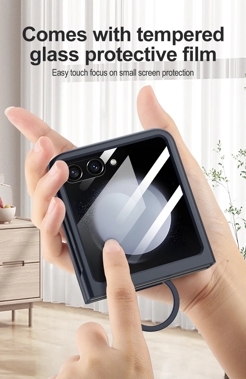 Luxury Matte Skin Feel Ring Phone Case For Samsung Galaxy Z Flip Series