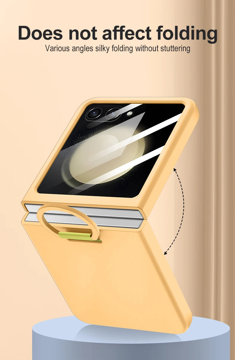 Elevate your Samsung Galaxy Z Flip Series with this sophisticated Matte Skin Feel Ring Phone Case. The sleek matte finish adds a touch of understated elegance, while the smooth, skin-like texture provides a luxurious feel.