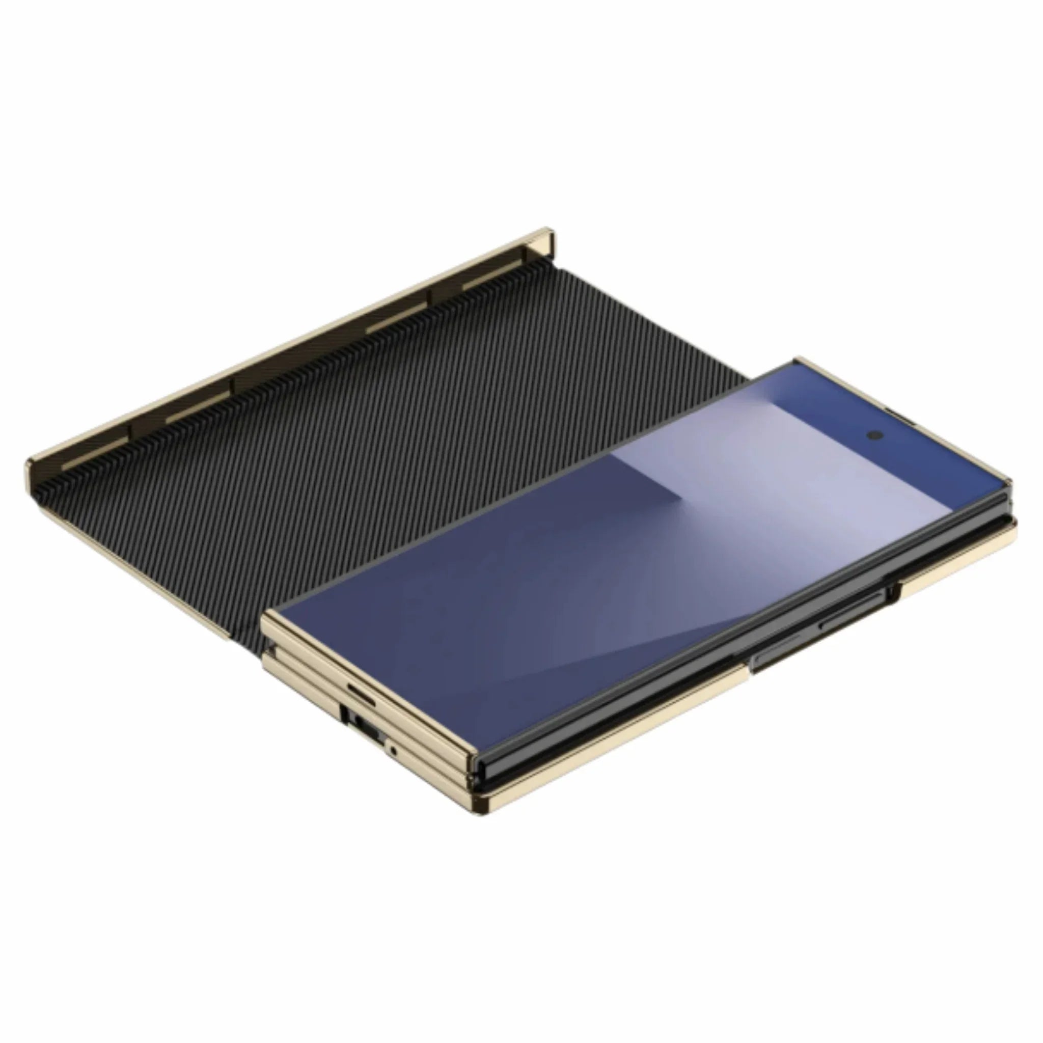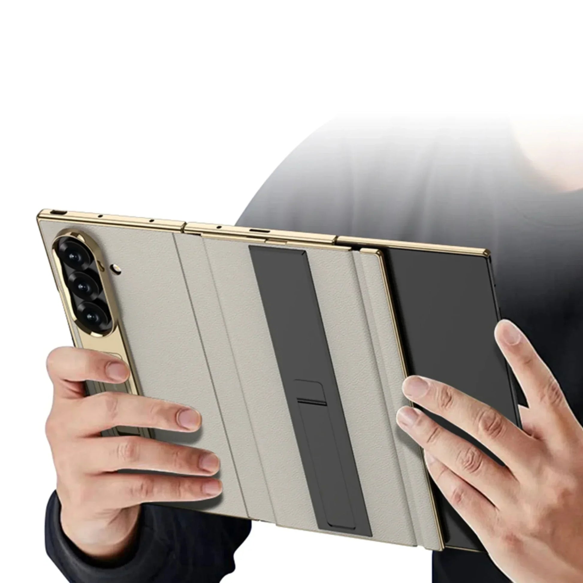 Elevate your Galaxy Z TriFold with FoldifyCase’s premium protection. This case features a luxurious textured finish, reinforced gold alloy frame, and precise camera cutout for full lens coverage. The integrated kickstand offers hands-free convenience, while the slim, form-fitting design preserves the TriFold’s sleek profile. FoldifyCase delivers advanced durability and style for your foldable device.