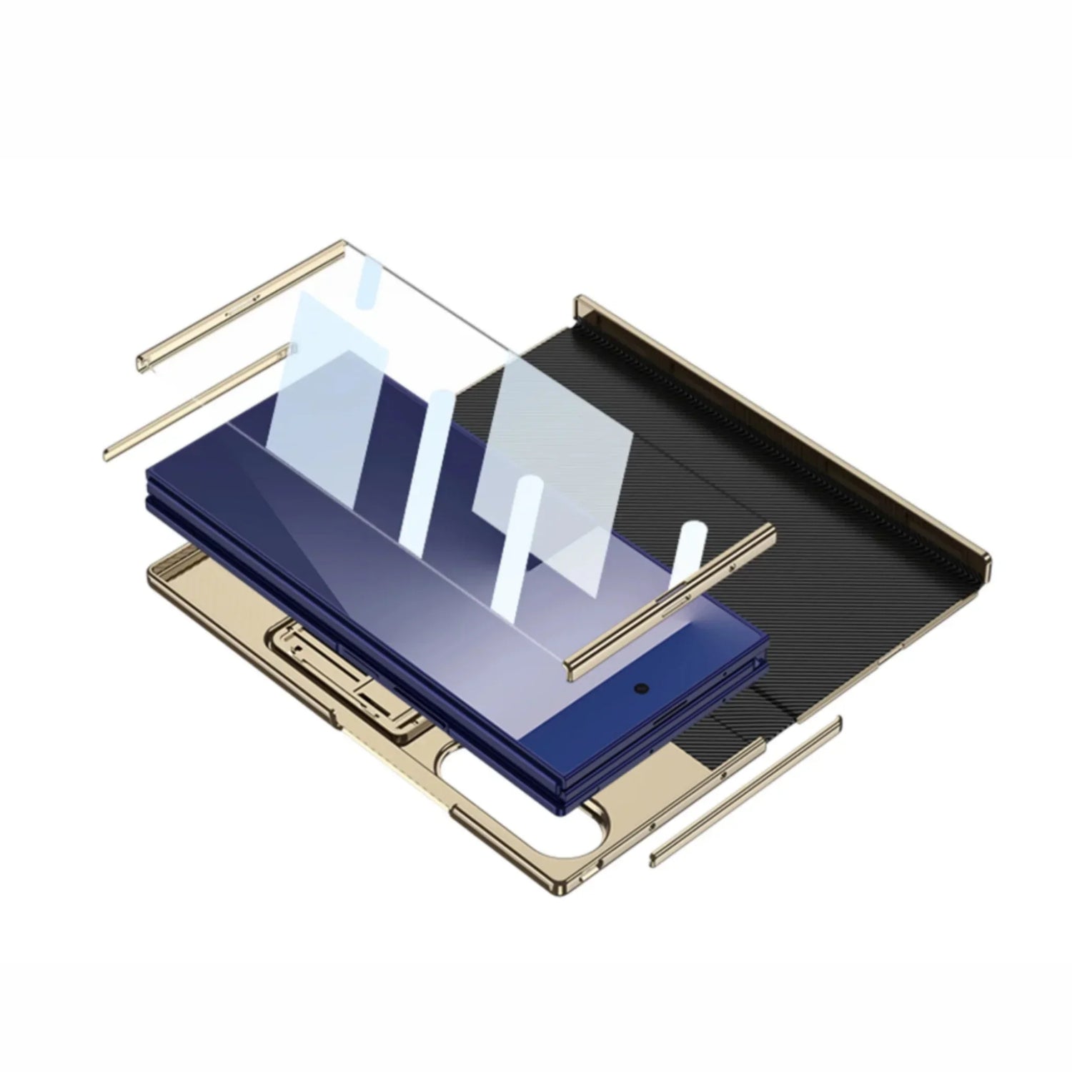 Discover the engineering behind FoldifyCase for Galaxy Z TriFold. This detailed exploded view highlights multi-layer protection, including a precision-fit hard shell, reinforced alloy frame, and integrated screen shield. Each component is designed for seamless compatibility, military-grade durability, and effortless installation—ensuring your foldable device is fully protected with FoldifyCase’s advanced technology.