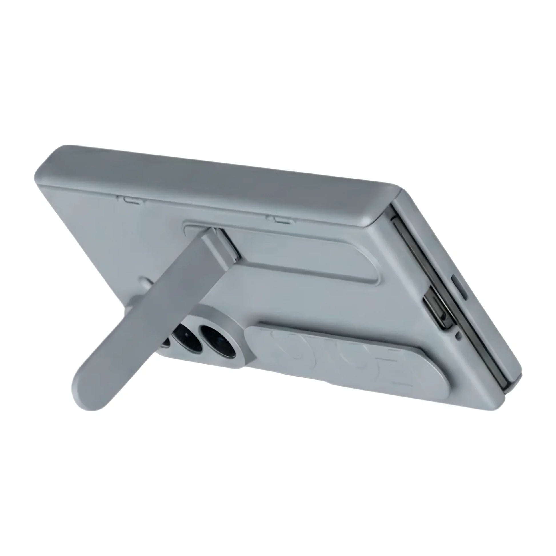 Unlock ultimate versatility for your Galaxy Z TriFold with FoldifyCase. This premium case features a durable alloy bracket that delivers a secure grip, rotates 360° for perfect viewing angles, and unfolds 170° into a sturdy kickstand. Integrated magnets ensure effortless car mounting, making FoldifyCase the essential protective accessory for your foldable device.