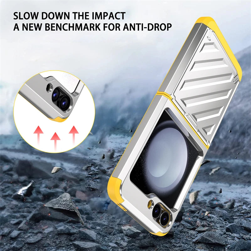 The durable metal construction and reinforced corners with 4-corner drop protection offer exceptional defense against drops and impacts, ensuring your Z Flip stays safe from everyday hazards.