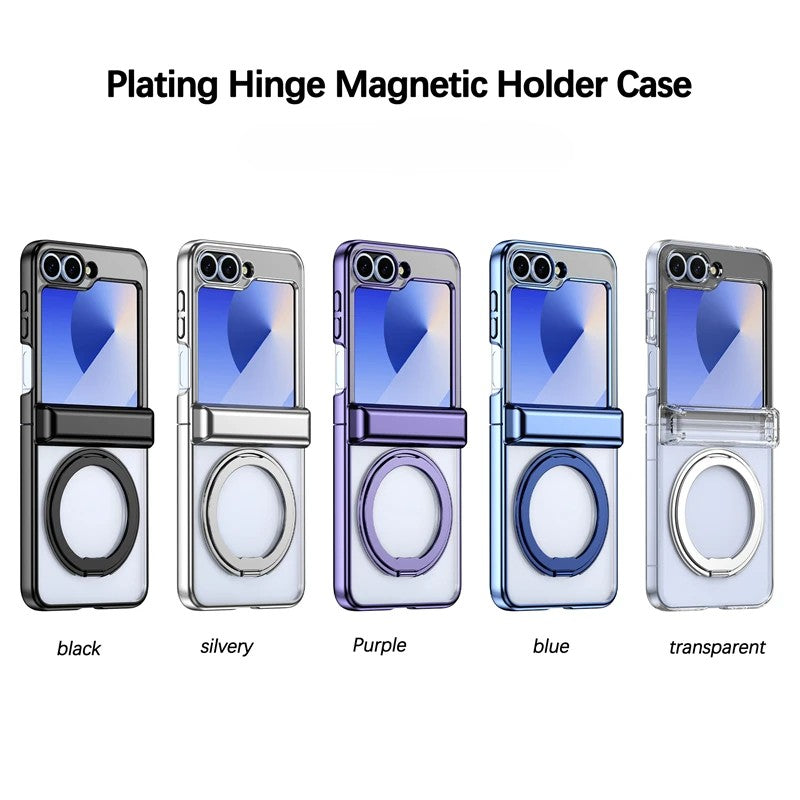 Elevate your Samsung Galaxy Z Flip Series with this luxurious and functional Plating Hinge 360° Magnetic Case. The sleek design features a premium plating finish on the hinge, adding a touch of sophistication to your device.